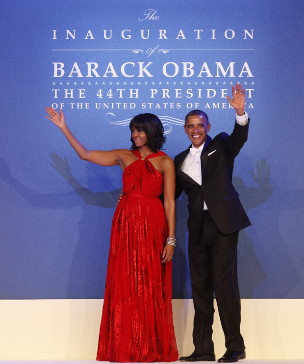 A primeira-dama dos Estados Unidos, Michelle Obama, permaneceu leal ao estilista nascido em Taiwan, residente em Nova Iorque, que também a vestiu no baile inaugural de há quatro anos. Michelle optou por um vestido de chiffon e veludo de cor vermelho rubi sem mangas, sapatos de Jimmy Choo e um anel de diamantes de Kimberly McDonald.